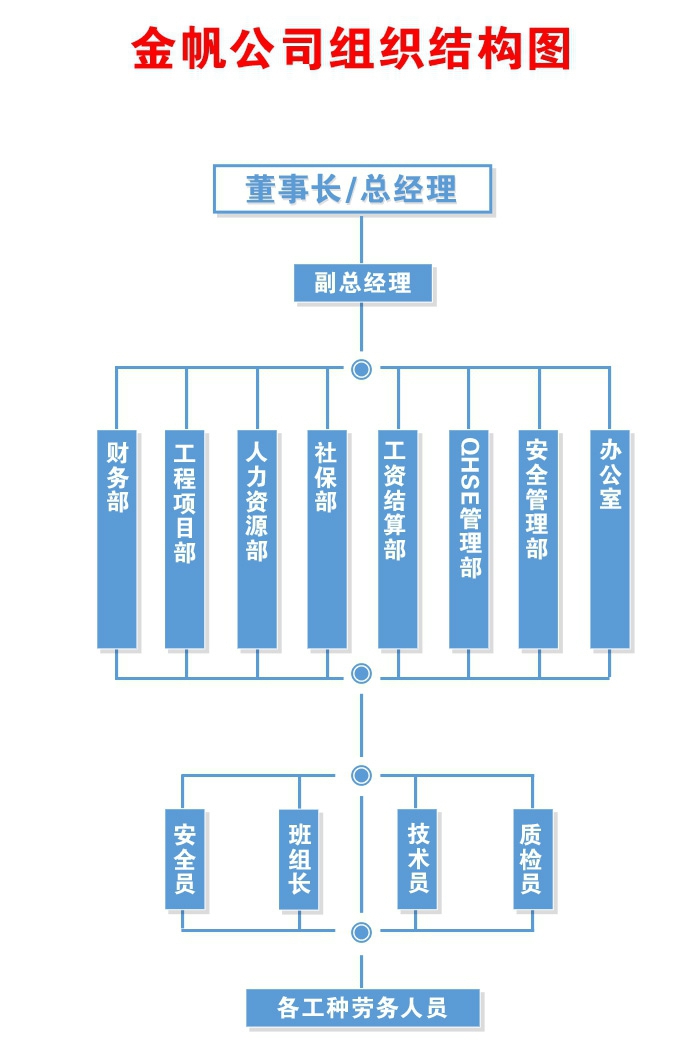 公司下設(shè)總經(jīng)理辦公室、工程項(xiàng)目部、生產(chǎn)經(jīng)營(yíng)部、安全監(jiān)督部、QHSE管理部、技術(shù)部、設(shè)備部、材料部、財(cái)務(wù)部、人力資源部、社保部、客戶服務(wù)部等管理。公司以現(xiàn)代化的科學(xué)管理手段推行先進(jìn)施工技術(shù),建立完善的質(zhì)量、安全環(huán)保體系,以服務(wù)態(tài)度、服務(wù)形象贏得了良好的經(jīng)濟(jì)效益和社會(huì)信譽(yù)。兩年來(lái)先后與世界五百?gòu)?qiáng)企業(yè)----瀘州市臨江油氣田服務(wù)公司(中石油下屬企業(yè))、中石化西南石油局物探大隊(duì)241隊(duì)(中石化下屬企業(yè))、中石化西南石油局物探大隊(duì)249隊(duì)(中石化下屬企業(yè))、中石化石油工程地球物理有限公司西南分公司(中石化下屬企業(yè))、中石化西南石油局貴州服務(wù)中心(中石化下屬企業(yè))、中石化西南石油局赤水天然氣銷售公司(中石化下屬企業(yè))、中國(guó)移動(dòng)通信集團(tuán)四川有限公司瀘州分公司;瀘州市第七建筑工程公司、瀘州太昌建筑安裝工程有限公司、四川省佳訊通信工程有限公司、四川瀘州市世紀(jì)建筑工程有限公司等單位建立勞務(wù)分包合作關(guān)系。